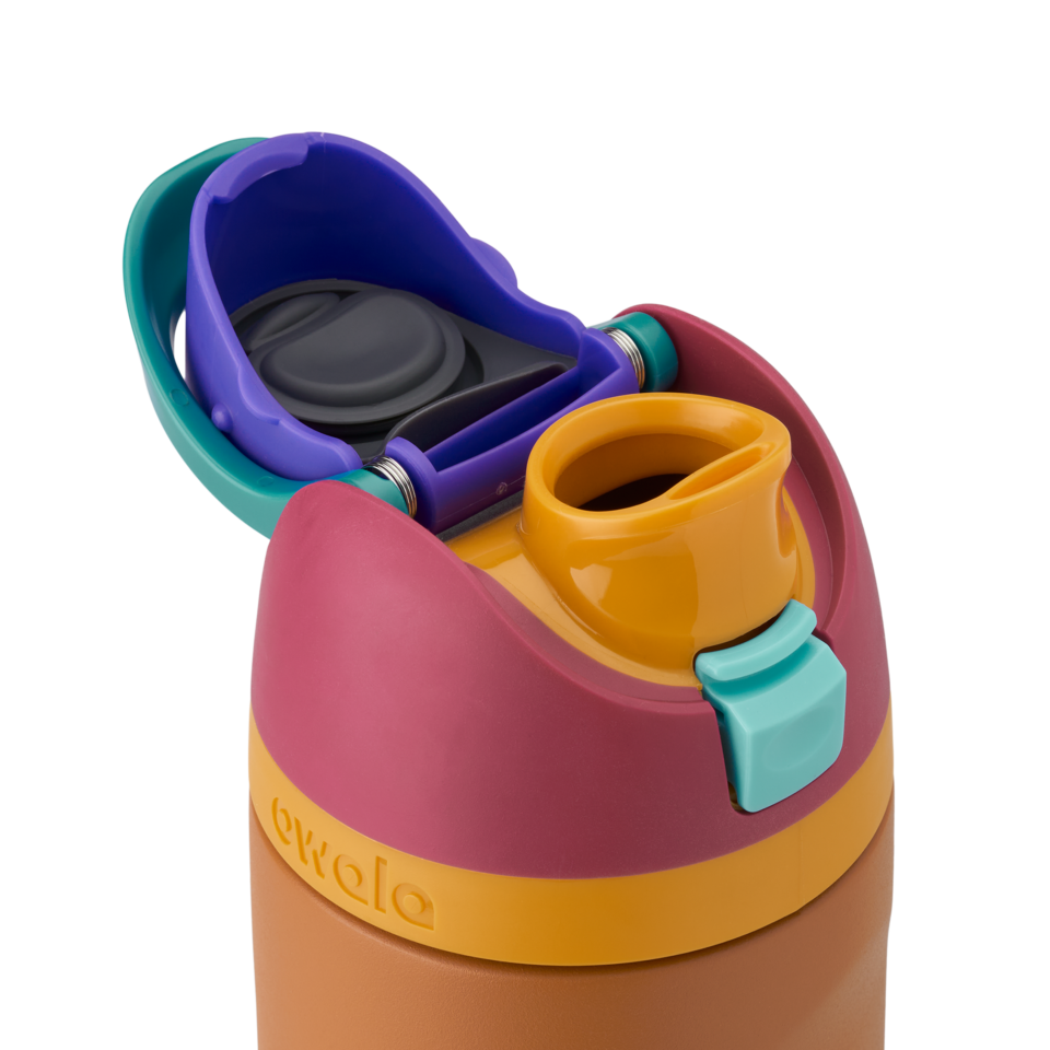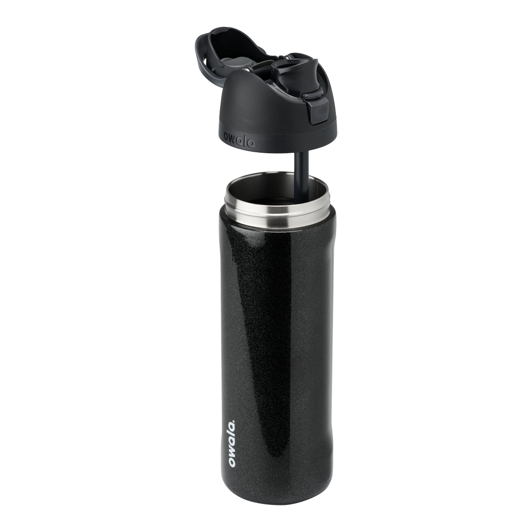 Introducing the versatile FreeSip water bottle. available in various sizes including a convenient 40 oz water bottle. a practical 32 oz water bottle. and a compact 24 oz water bottle. You deserve options when it comes to hydration and that’s why we designed the FreeSip to let you choose your own adventure—hold upright to sip through the built-in straw or tilt back to swig through the wide-mouth opening. If that isn’t exciting enough. this bottle is ready to spring into action at any time. Just push the button to flip the top open and push back down to lock it shut (and keep out germs). But we should warn you: If you’re one of those people who likes bottles that spill water everywhere. you’re out of luck… the FreeSip is completely leak proof.